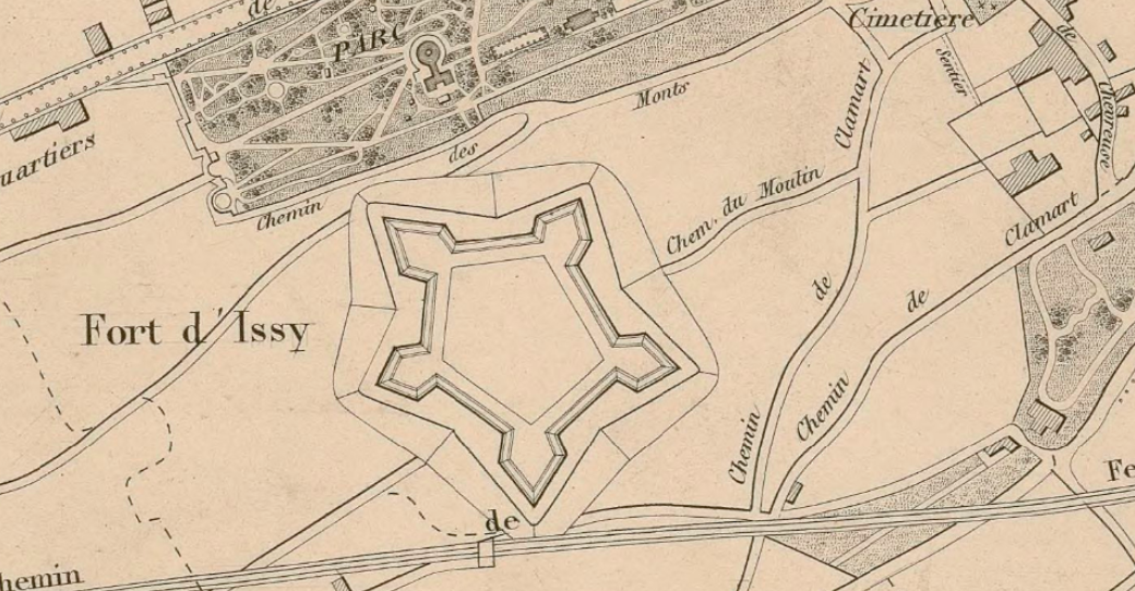 Le fort d’Issy était, comme la forteresse du Mont-Valérien, un des seize forts « détachés » de l’enceinte qui complétaient les fortifications de Paris (qui a été évoquée dans un autre article).