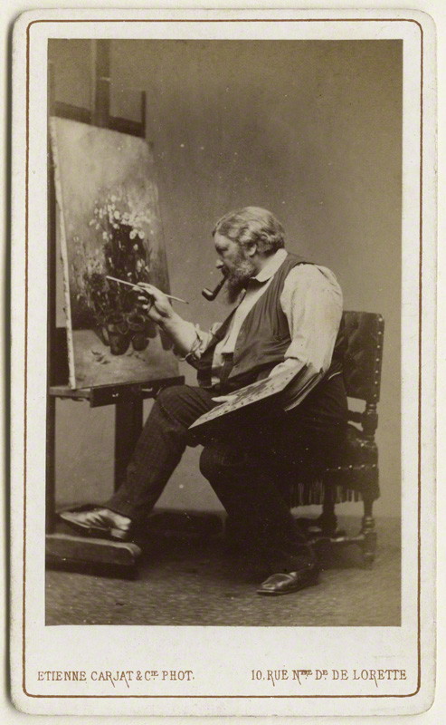La photographie de Courbet par Carjat date des années 1870, peut-être d’un de ces jours de 1872 où les deux amis buvaient au Gaulois avec leur ami Puissant. Elle se trouve à la National Portrait Gallery à Londres.
