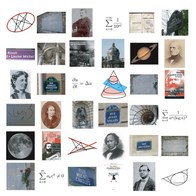 En parlant de calendriers, les lundis, qui étaient les mêmes en 1871, étaient alors les dates des séances de l’Académie des sciences, ce qui me permet de vous renvoyer à Mai quai Conti, un texte que j’ai écrit à ce sujet (l’Académie des sciences et la Commune) et que l’on peut lire sur le site de l’Oulipo. L’image qui sert de couverture à cet article est une sorte de « résumé » de ce texte, en forme de sextine, ce qui est expliqué au début de Mai quai Conti.