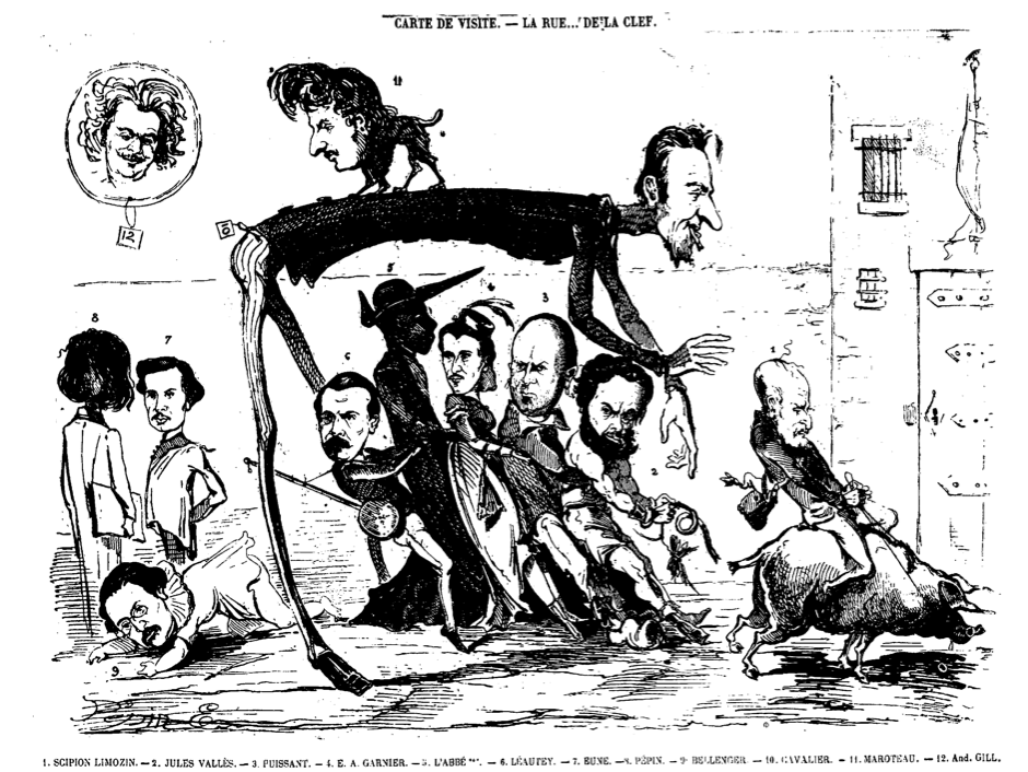 - Le caricaturiste auteur de l’image, André Gill, qui s’est représenté, selon une grande tradition, dans le médaillon au mur.