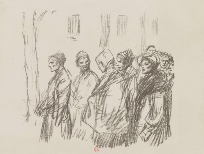 J’ai vu, au fond d’un préau, des femmes assises dans un rayon de soleil pâle. Il y avait là des visages de vierges.