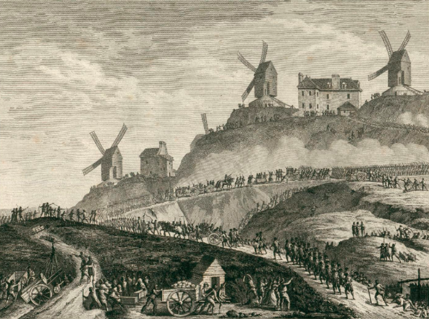 C’est alors que, d’un mouvement spontané, semblable à celui qui se produisit quatre-vingts ans plus tard, au 18 mars 1871, les vainqueurs du 14 juillet, prirent leurs canons, les canons des Invalides, les canons de la Bastille, et les hissèrent sur la Butte Montmartre.