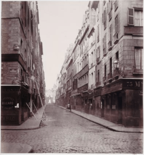 Il y avait longtemps que je n’avais pas utilisé de photo de Marville. Sûrement, à l’heure où les journalistes ont fini d’écrire leur article, la rue était aussi déserte… quoique, après une telle fête… En tout cas, la photographie vient du site Paris Musées, et plus précisément d’ici.