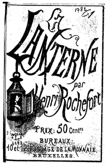 C’est la couverture de la Lanterne (du 24 juillet 1869) qui nous sert de couverture aujourd’hui. Elle vient de Gallica, là.