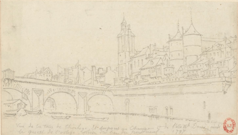 La vue du Pont-au-Change en 1797 vient de Gallica, là.