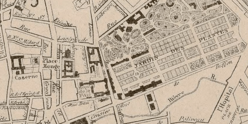 La couverture est extraite de mon habituel et favori plan de Paris, on y voit Sainte-Pélagie, entre la (toujours) caserne de la place Monge et le (toujours) jardin des Plantes.