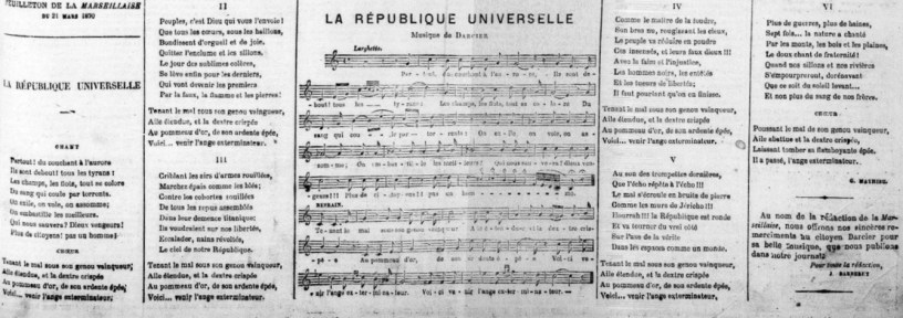 Comme annoncé dans les articles 1 (automne 1869), 2 (Rochefort), 3 (Varlin), 4 (les journalistes et la Commune) et comme présenté dans l’article 0 (Demain), voici la Marseillaise, quotidien, quotidiennement.