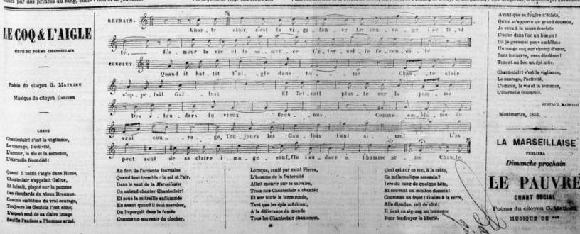Comme annoncé dans les articles 1 (automne 1869), 2 (Rochefort), 3 (Varlin), 4 (les journalistes et la Commune) et comme présenté dans l’article 0 (Demain), voici la Marseillaise, quotidien, quotidiennement.
