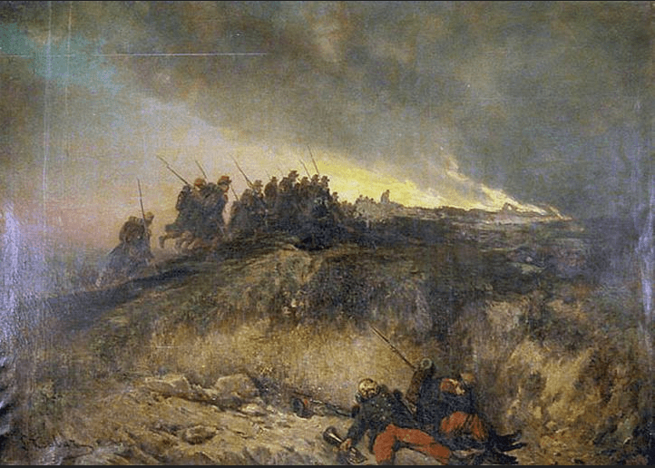 Le peintre François Tabar (1818-1869), dont on vend les œuvres, est l’auteur de tableaux historiques, dont cet épisode de la guerre de Crimée. J’ai trouvé cette reproduction sur un site du ministère de la culture, là.