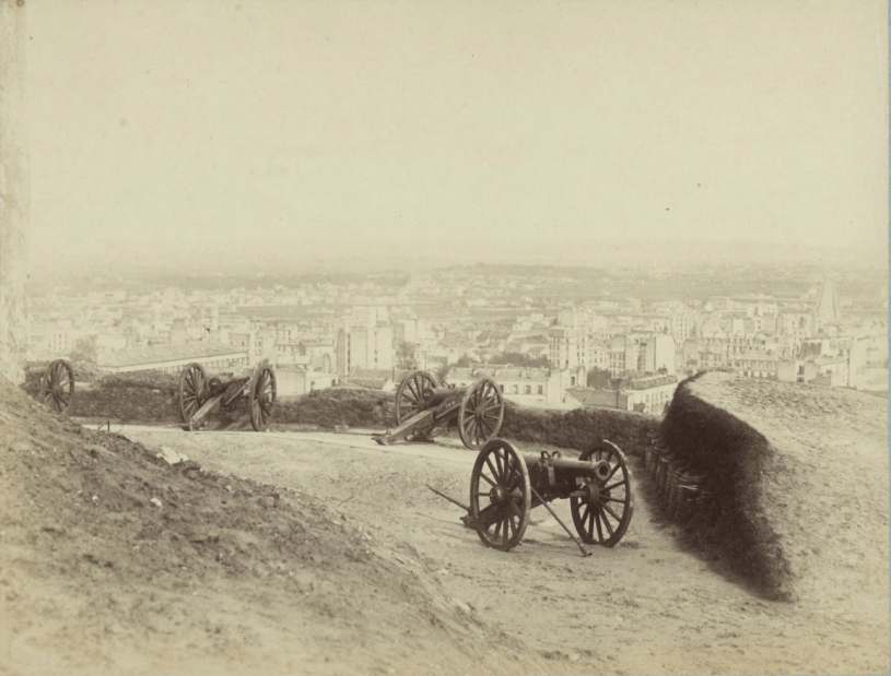 La photographie de Paris vu de Montmartre est due à Bruno Braquehais. Elle est au Musée Carnavalet, là.