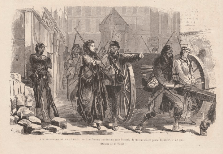 Comme l’image de couverture le rappelle (elle vient du Monde illustré daté du 17 juin 1871, via Gallica — la rue Taranne, où se passe cette scène, est aujourd’hui un morceau du boulevard Saint-Germain), tout ça n’a pas empêché des femmes de participer à la Commune! Mais les lectrices et les lecteurs de ce site le savent. Au cas où, voici quelques liens: