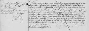 (Je rappelle que l’on peut grossir l’image en cliquant dessus.) Pour être vraiment sûre… eh bien il se trouve que je savais qu’Isidore Boulet était un ami d’Albert Theisz: lorsque son jeune frère Frédéric Theisz (que nous avons vu avec Albert sur le boulevard Voltaire le 25 mai 1871) s’est marié, le 4 janvier 1868, avec une couturière nommée Marie Marquet, les témoins étaient ses frères Albert et Félix (qui a été tué pendant la Commune), son beau-frère Philippe Lanaux, et… Isidore Boulet, ciseleur, 17 rue Saint-Ambroise.