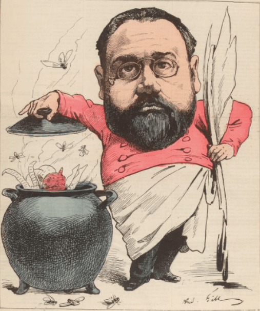 La caricature par André Gill de Zola et de son Pot-Bouille est parue à la une de La Nouvelle lune, le 23 avril 1882, on la trouve donc sur Gallica, là.