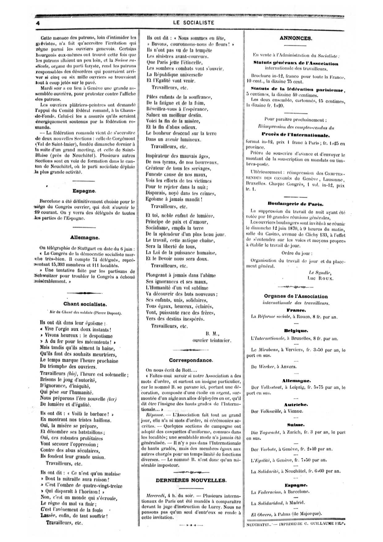 - Ne ratez pas, en page 4, le Chant socialiste écrit (tout chaud) par Benoît Malon dans sa prison, et dont j’ai déjà publié le texte ici.