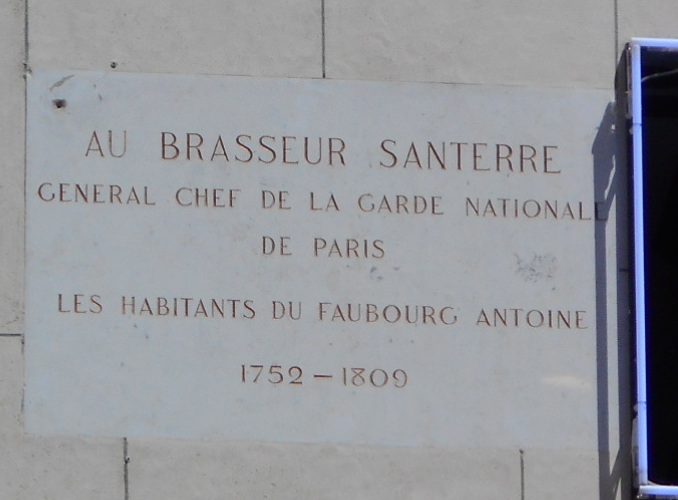 bien édulcoré sur la plaque (31 bis rue de Montreuil), puisque « populaire » est pour « ouvrière », qu’il s’agissait d’une émeute de la faim et que la « dure répression » fut un authentique massacre (de 25 à 900 morts, selon les sources). La plaque suivante (9 rue de Reuilly) est un hommage plus acceptable, à un révolutionnaire bourgeois, Santerre,