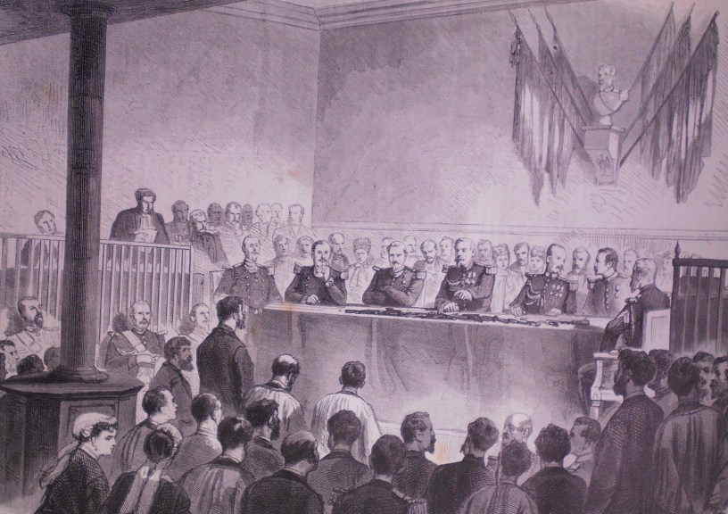 Le Conseil de guerre s’est réuni dès le 20 août — on comprend que Vallès et ses amis se soient dépêchés. Les inculpés étaient accusés, non seulement d’assassinat, mais aussi d’être des espions prussiens et des agents de l’Internationale. Quatre d’entre eux, parmi lesquels Eudes et Brideau (le 29 août, dans leur cas) ont été condamnés à mort. Le 4 septembre les libéra.