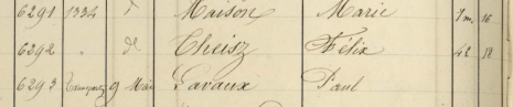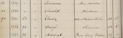 (Comme toujours, vous pouvez cliquer sur l’image pour l’agrandir, le nombre 41 désigne l’âge, les autres nombres sont des numéros d’ordre. N’hésitez pas à aller regarder le registre sur le site des Archives de Paris, en suivant le lien au début de cet article.)