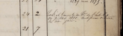 Pour une raison ou pour une autre, les quatre corps de Caroline, Félix, Philippe et Albert ont été exhumés pour être réinhumés au Père-Lachaise le 20 juillet 1881. l’image suivante vient de la page de droite du registre, en face de la précédente (qui est un morceau de la page de gauche).