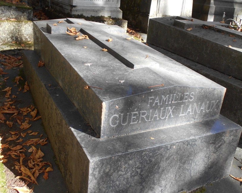 - Une fille d’Angelina Lanaux a épousé un M. Guériaux, d’où le Guériaux Lanaux sur la pierre. Qui, bien sûr, est plus récente que l’inhumation de 1881 dont il est question ici.