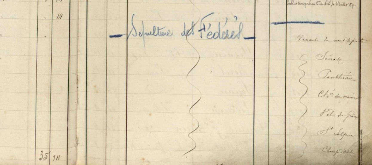Bien sûr qu’il y a peut-être des soldats versaillais parmi les cadavres. Pourtant, en référence à l’ambulance de la presse et aux deux cimetières du seizième arrondissement, on peut consulter le registre des décès de cet arrondissement, qui contient de nombreux combattants morts. Mais leurs noms étaient connus des déclarants.