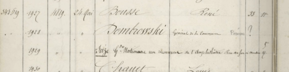 La deuxième question est : comment reconnaît-on un tué par les versaillais dans un registre de cimetière ? Par exemple, Dombrowski est inhumé au Père Lachaise le 24 mai,