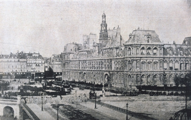 Comme celle du pont du Carrousel dans un article précédent, l’image de couverture, qui représente l’Hôtel de Ville pendant la Commune, vient d’un d’un vieux livres d’images du siège et de la Commune, sans nom d’auteur. Merci à Laurent Bourcier de m’avoir signalé cette photographie.