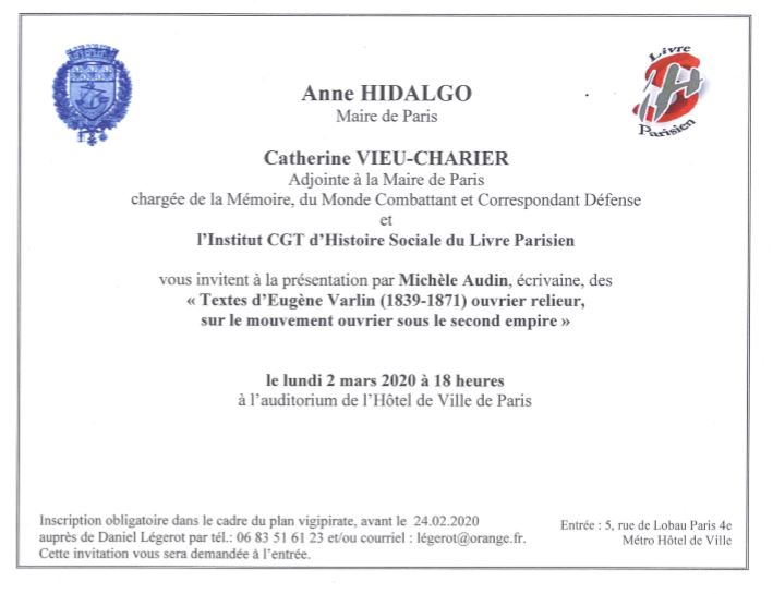 je parlerai d’Eugène Varlin, de l’Association internationale des travailleurs à la Commune