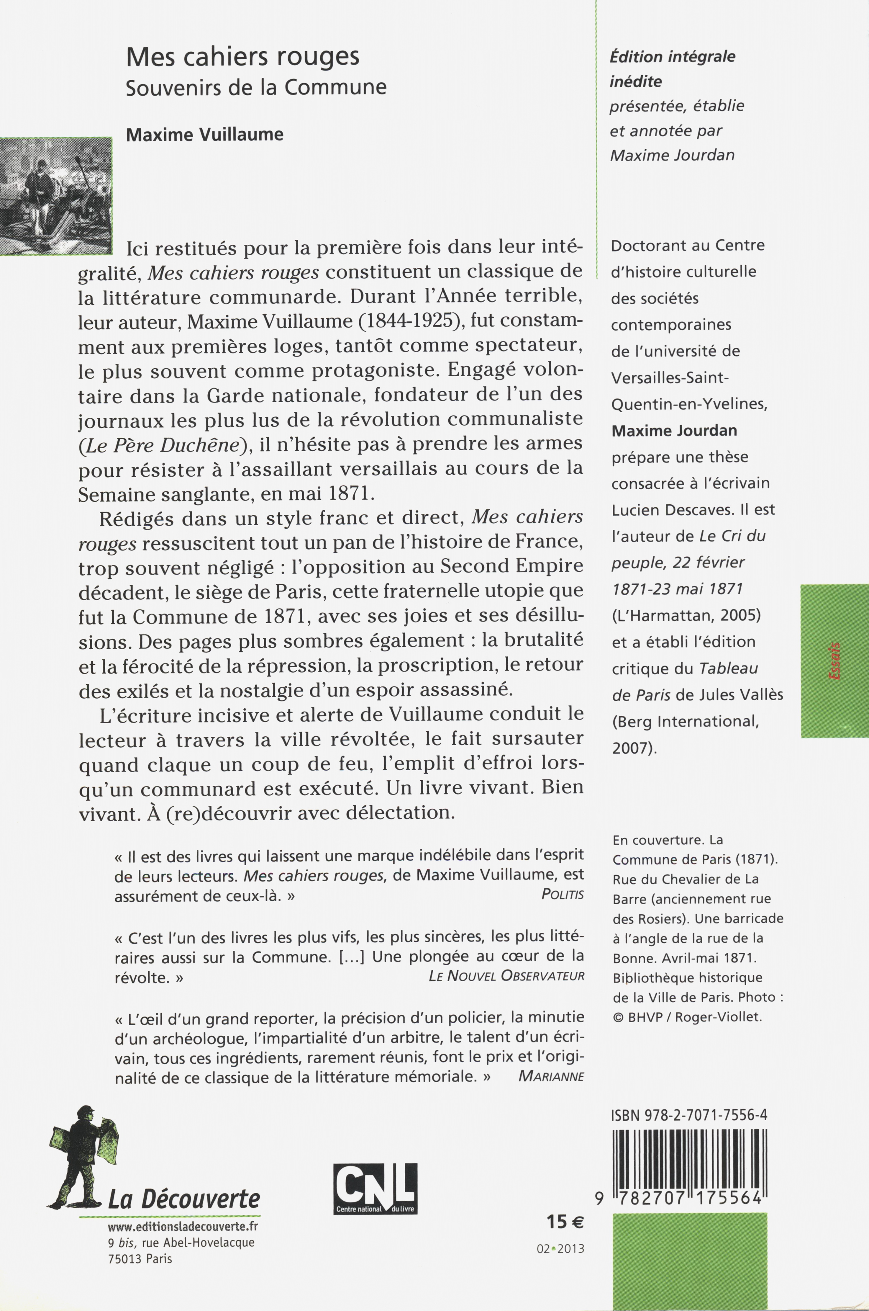 Vuillaume (Maxime), Mes Cahiers rouges, édition intégrale inédite présentée, établie et annotée par Maxime Jourdan, La Découverte (2011).
