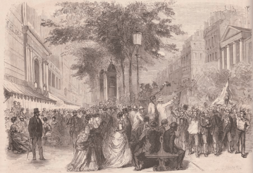Avant de passer la parole à Jules Vallès, je rappelle que l’Association internationale des travailleurs, dont les dirigeants parisiens ont été condamnés (ou sont en fuite) a réussi à publier un manifeste contre la guerre, « Aux travailleurs de tous les pays » (que vous pouvez lire dans cet article, qui fait le point sur ce que font les « internationalistes » en ce mois de juillet).
