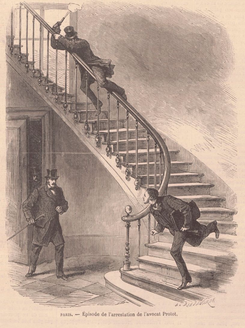L’image de l’arrestation d’Eugène Protot, que j’avais déjà utilisée en son temps, vient toujours du Monde illustré daté du 7 mai 1870, et elle est toujours sur Gallica, là.