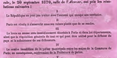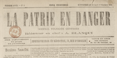 14 septembre 1870, dans La Patrie en danger, les socialistes allemands acclament la République française et autres nouvelles