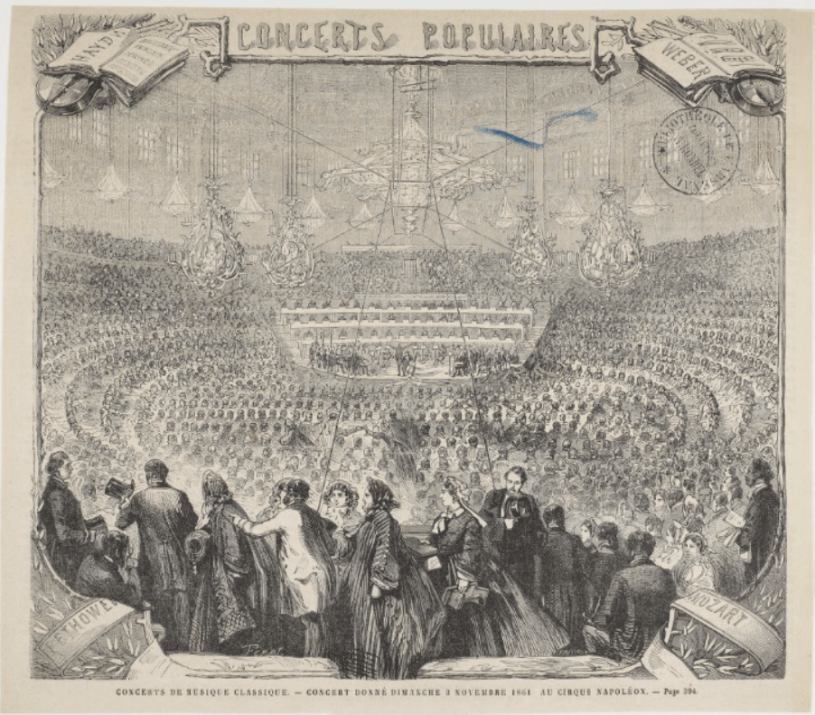 Dans votre article sur les Concerts populaires, vous vous demandez comment M. Pasdeloup a pu obtenir la salle du Cirque et la permission de donner concert.