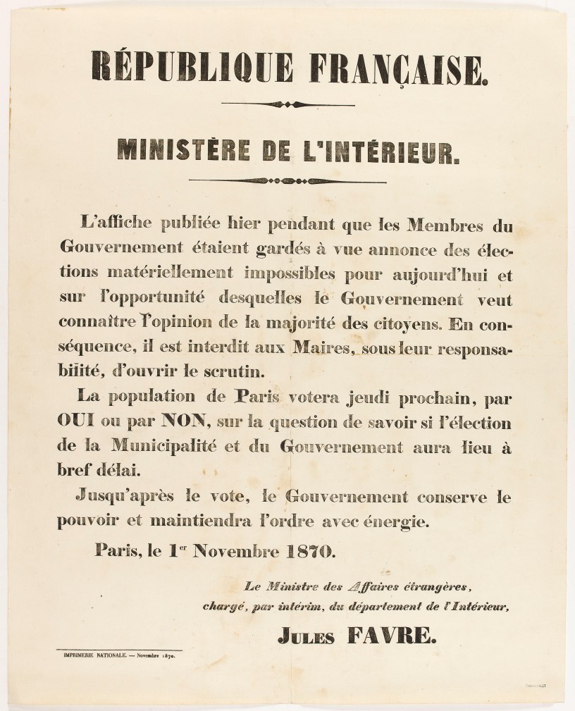 Fait à l’Hôtel de Ville, le 1er novembre 1870.
