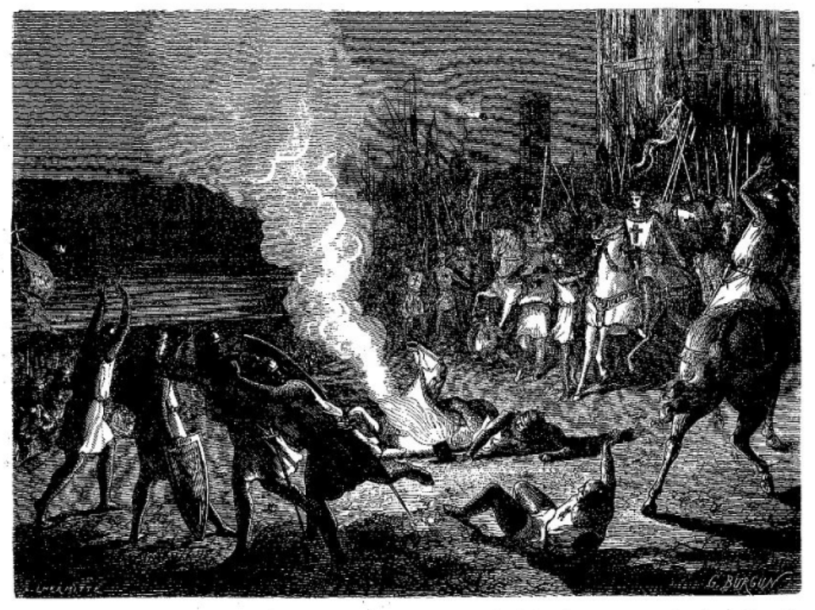Le feu grégeois vient des Grecs (c’est ce que veut dire « grégeois ») mais fait surtout partie de l’héritage des croisades (voir l’image de couverture). Ce serait une redoutable arme incendiaire. On en parle, à Paris, depuis septembre…