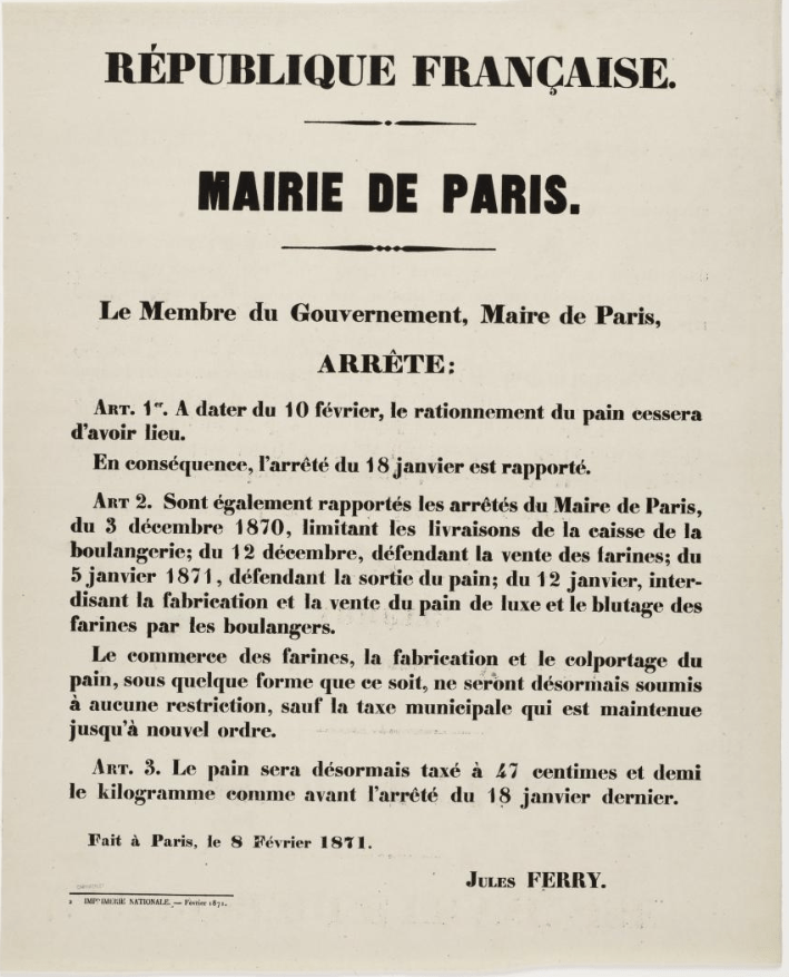 En allant voter, ces messieurs les électeurs parisiens ont peut-être vu l’affiche que j’utilise en couverture de cet article (et que j’ai trouvée au musée Carnavalet). Une bonne nouvelle: à partir d’après-demain, le pain n’est plus rationné. [Mes excuses pour avoir utilisé deux jours de suite la même couverture, c’est une indication du désordre chronologique dans lequel j’ai écrit ces articles…]