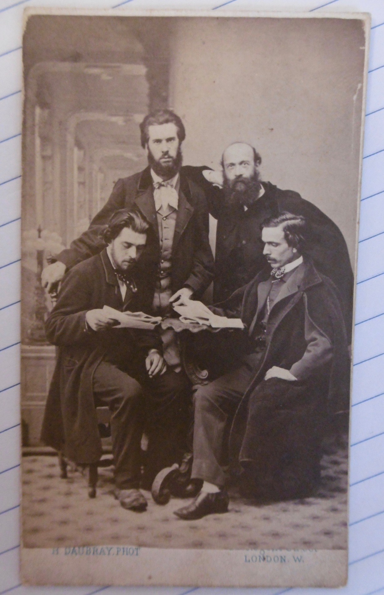 Oui, la photographie. De gauche à droite, debout, Eugène Varlin, bien sûr, et Henri Tolain (reconnaissable, il existe bien d’autres portraits de lui), assis, Charles Limousin (confirmé par sa famille, qui possède d’autres photos de lui) et, forcément, le dernier doit être Ernest Fribourg. Le photographe était