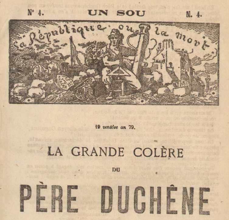 Ah! foutre! à quel cénacle de gâteux sommes-nous encore livrés, et comme il faut que le Père Duchêne ouvre l’œil plus que jamais [hélas, le journal est (déjà) interdit — voir notre article d’hier]!