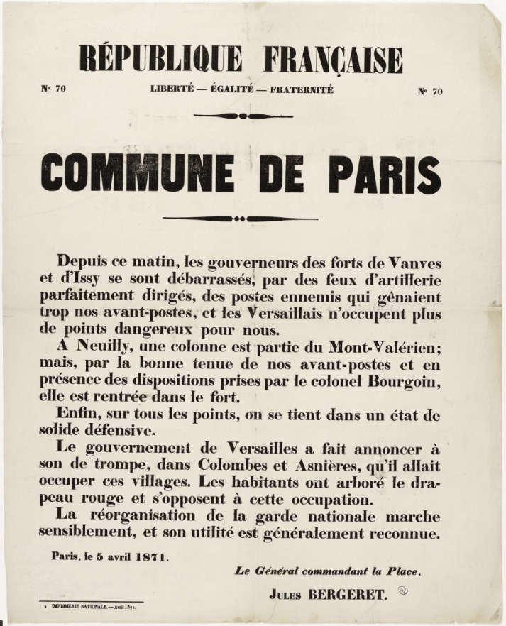 Il y a à choisir: levée en masse, marche sur Versailles; l’inondation — ou bien, on traite — avec le monde! — PARIS LIBRE!