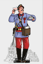car tout ça a été soutenu par des images colorées qui ridiculisent les communards, l’ouvrier orfèvre Léo Frankel en salopette avec un marteau, le directeur des postes Albert Theisz en facteur jovial brandissant une lettre pour Thiers, tous pareils, bien nourris, propres sur eux, après le barnum médiatique du 18 mars au Sacré-Cœur, où l’on a même entendu des « venez vous faire photographier avec Varlin » — à l’endroit même où il a été exécuté, il fallait oser, je vous jure que je l’ai entendu, je vous jure que je ne suis pas la seule que ça fait pleurer — ils ont trouvé leur place, dans L’Humanité, hélas, et juste à côté de mes articles quotidiens sur le site de ce journal, et à l’Hôtel de Ville, ça c’est normal, ces communards bcbg, ou bobos, ils ne font plus peur à personne!