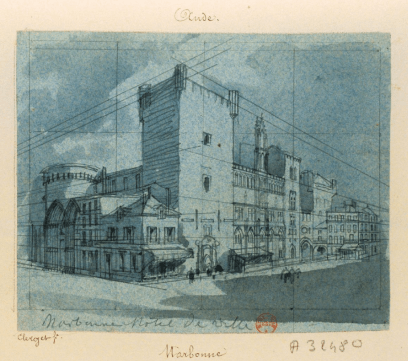 Un regret: le peu d’attention que j’ai portée aux « Communes de province ». J’avoue que les sempiternelles énumérations, la Commune de Marseille, la Commune de Lyon, la Commune de Narbonne, la Commune de Saint-Étienne, la Commune du Creusot, la Commune de Toulouse et celles que j’ai oubliées… me semblent apporter peu de choses à notre connaissance de l’histoire. Les travaux sur le mouvement communaliste « national » me semblent plus prometteurs et intéressants, mais vraiment je sais trop peu de choses pour en parler. C’est pourquoi je n’en ai presque rien dit — et je n’en dirai pas beaucoup plus. Pour me faire pardonner, ce beau dessin de l’Hôtel de ville de Narbonne, que j’ai utilisé comme couverture de ce court article, qui est dû à Hubert Clerget, et que j’ai trouvé sur Gallica.