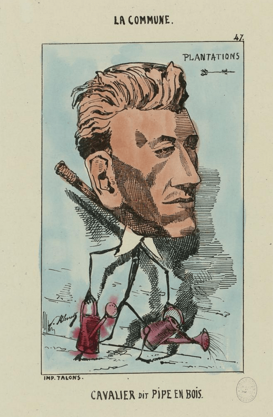 La caricature de Klenck, dans la série « La Commune », vient du Musée Carnavalet et montre Cavalier au travail, avec ses arrosoirs!