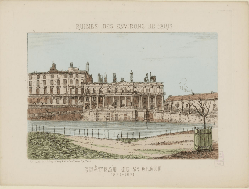 Les ruines du château de Saint-Cloud ont été gravées par Marks, elles viennent du musée Carnavalet.