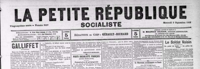 Comme je l’ai dit dans l’article précédent, c’est un article d’Amilcare Cipriani, paru dans La Petite République socialiste du 3 septembre 1902 qui a fait réagir Galliffet.