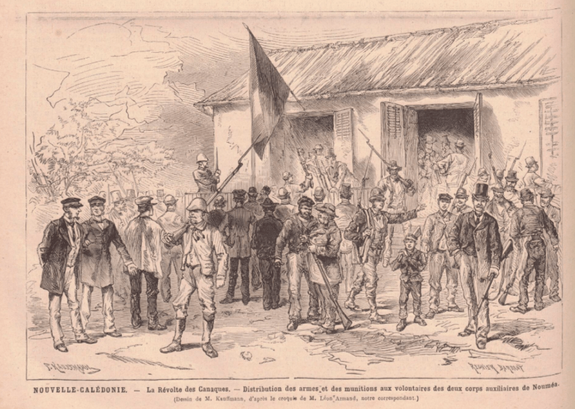 Je n’ai pas eu le courage de reproduire les images (françaises, coloniales) d’époque de l’insurrection kanak. Celle que j’utilise comme couverture ne montre que des « blancs » et vient du Monde illustré du 28 septembre 1878 (n’hésitez pas à suivre le lien et à tourner les pages!).