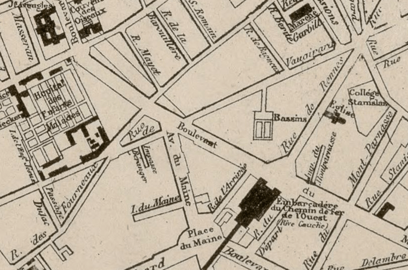 Pour le petit garçon, l’état civil ne donne aucune piste: Nathalie accouche à l’hôpital de la Charité (c’est l’adresse 47 rue Jacob qui figure dans l’acte), dans le sixième, qui est l’arrondissement des relieurs et qui est aussi très proche de son domicile, 12 impasse Béranger — une adresse idéale pour une relieuse bretonne, à proximité immédiate des lieux de travail et… de la gare Montparnasse (ceux qui ont lu l’unique biographie existante de Nathalie Le Mel et croient que l’impasse Béranger se trouve dans le troisième arrondissement sont invités à regarder le plan utilisé en couverture, toujours extrait du même plan de Paris). Comme c’est un hôpital, ce sont des employés de cet établissement qui sont les témoins pour l’état civil.