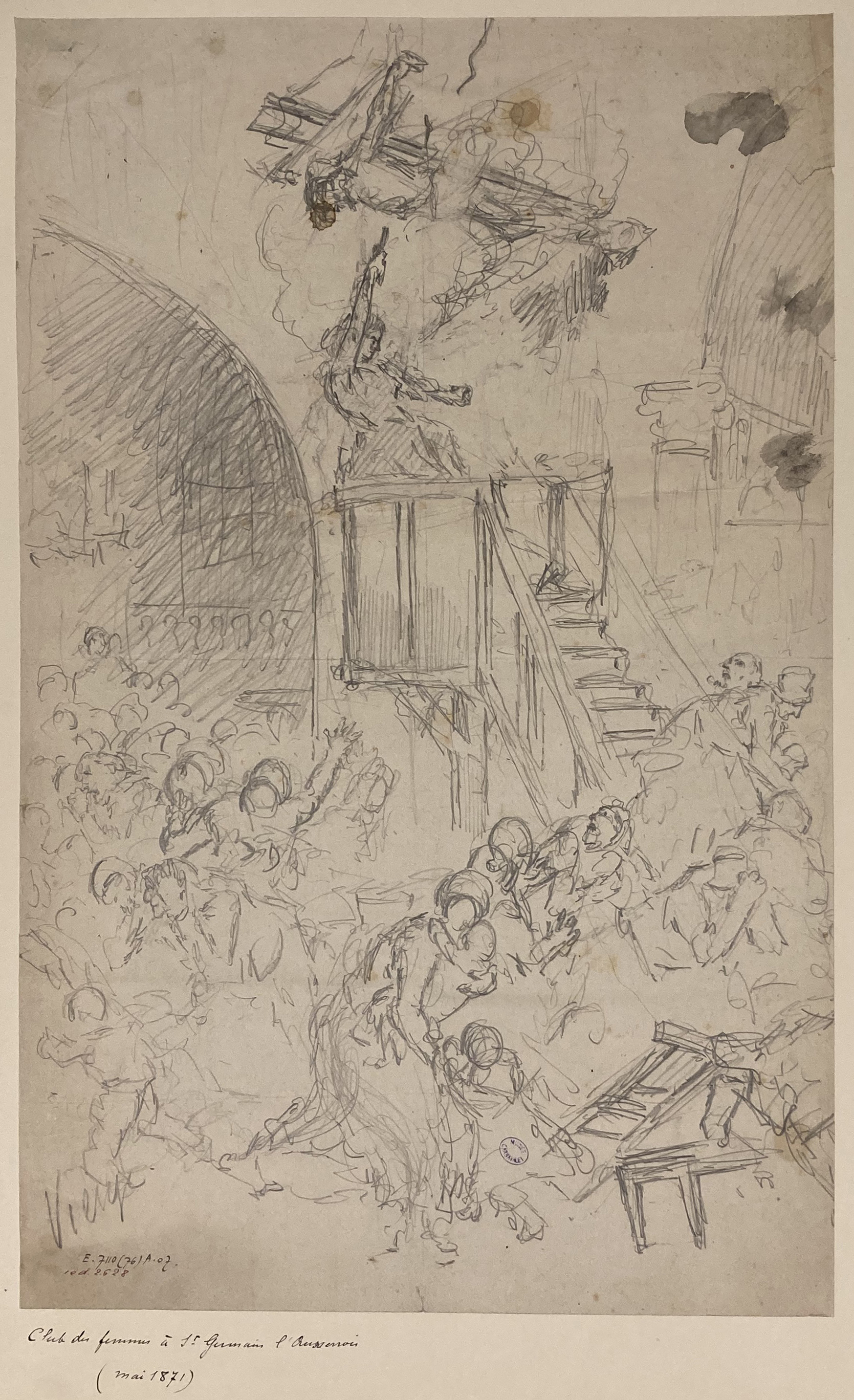 Si vous n’êtes pas hispanisant, je vous indique que vous venez d’assister à un nouvel effacement des femmes (mujeres). Quand je vous le dis… Mais, je suis d’accord, ce n’est pas le sujet. C’est d’ailleurs d’un autre dessin, et même de trois, que je veux vous parler. Ils sont dans les réserves du musée Carnavalet. En voici des photographies (de qualité médiocre).