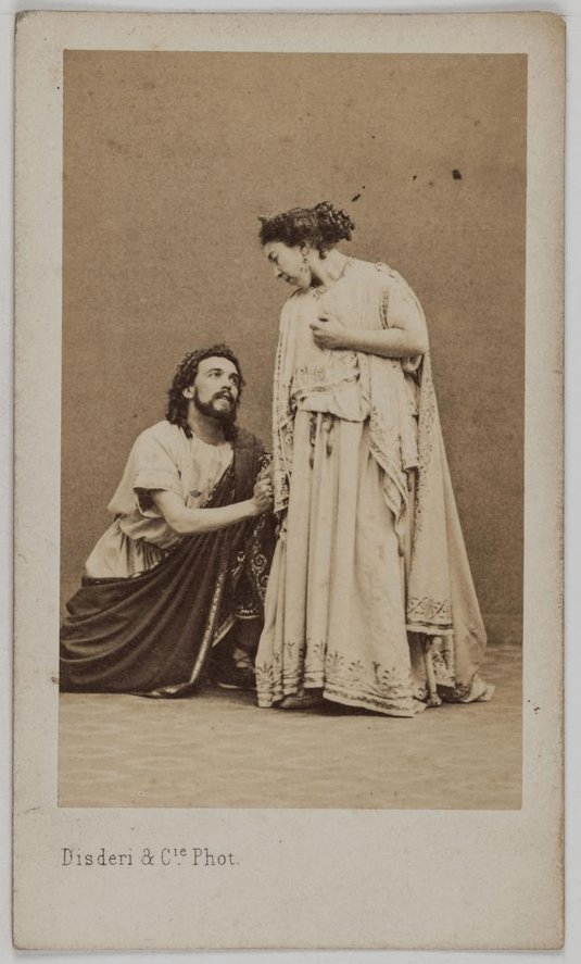 La photographie représente Pauline Viardot et Jules Michot en 1860 dans Alceste. Je l’ai trouvée sur le site de Paris-Musées.