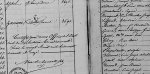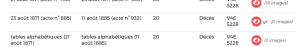 Et ce que vous voyez sur la page de droite est la liste annoncée. Elle contient 62 noms et, pour chacun, l’indication du registre dans lequel on peut trouver: