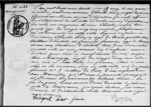 À la mort de son mari, Augustine Mangez, sa mère, dont je n’ai vu la profession sur aucun acte, avait 26 ans, trois petits garçons, Alexis, l’aîné, mais aussi Julien Joseph, né le 5 juin 1837 et Placide Charles, né le 10 mai 1839 — un fils posthume, donc. C’est une sage-femme qui a déclaré la naissance de ce bébé. Elle était accompagnée du grand-père des petits garçons, ainsi l’acte de naissance nous apprend que ce grand-père était, comme son fils, plafonneur.