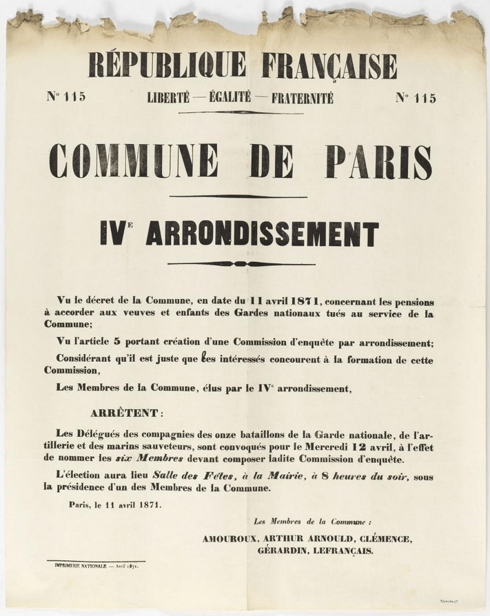 Sur ce site, nous avons vu Eugène Gérardin être élu à la Commune le 26 mars par le quatrième arrondissement, ainsi qu’Arthur Arnould, Gustave Lefrançais, Adolphe Clémence et Charles Amouroux. Il a obtenu 8 104 voix, ce qui en faisait le quatrième élu, mais il est remarquable que tous les cinq ont fait des scores assez semblables, de 8 608 voix pour Arnould à 7950 pour Amouroux — ce n’était pas le cas dans tous les arrondissements !